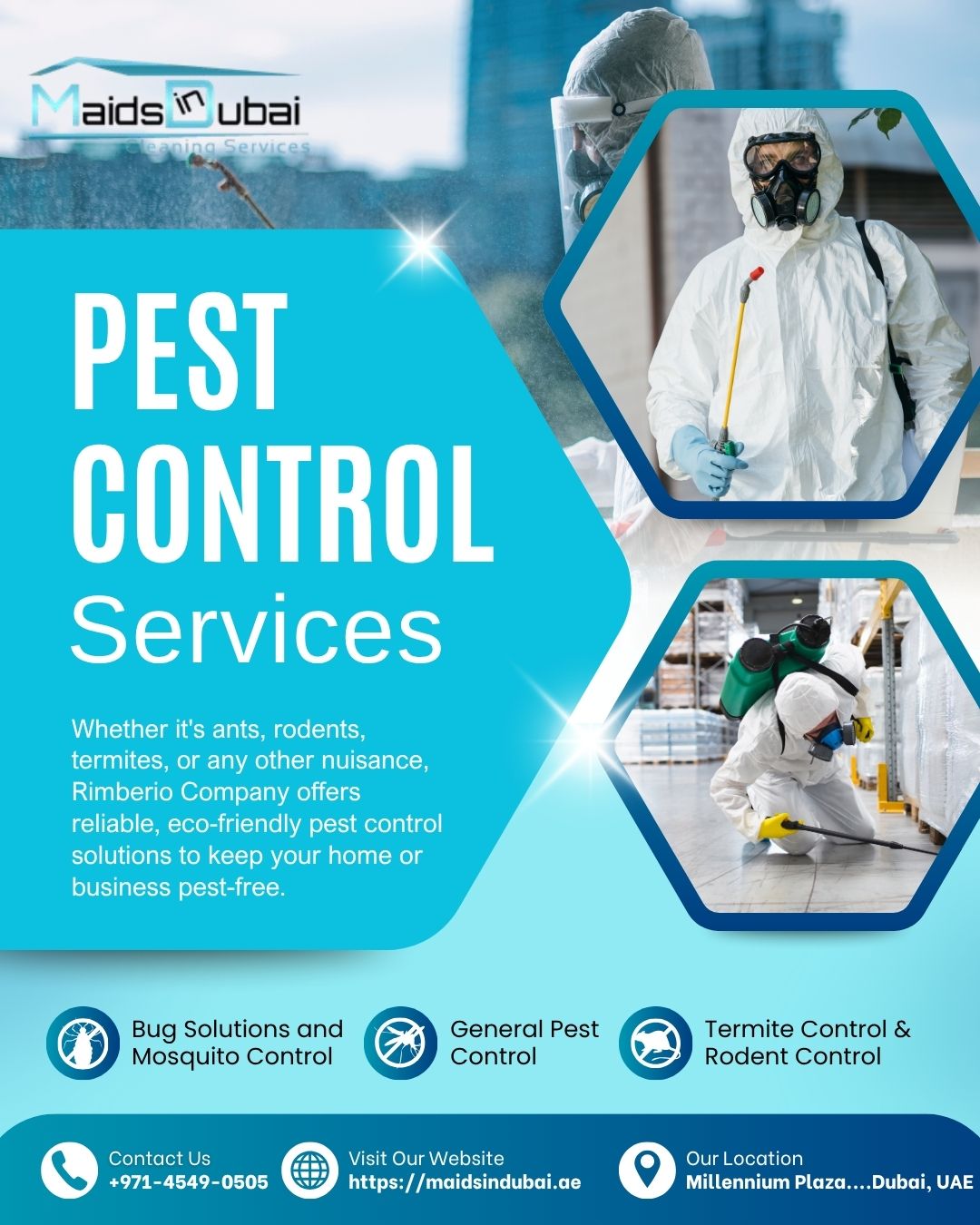 Protect your home and business from unwanted pests with our expert Pest Control Services Dubai. Our licensed professionals specialize in removing cockroaches, bed bugs, termites, ants, and rodents using eco-friendly and odorless treatments. We ensure long-lasting protection, thorough inspection, and complete sanitization for a healthier space. Whether it’s a villa, apartment, or office, our team guarantees safe and effective results with minimal disruption to your routine. Call now: 045490505 – Schedule your pest control service today and enjoy a pest-free environment!